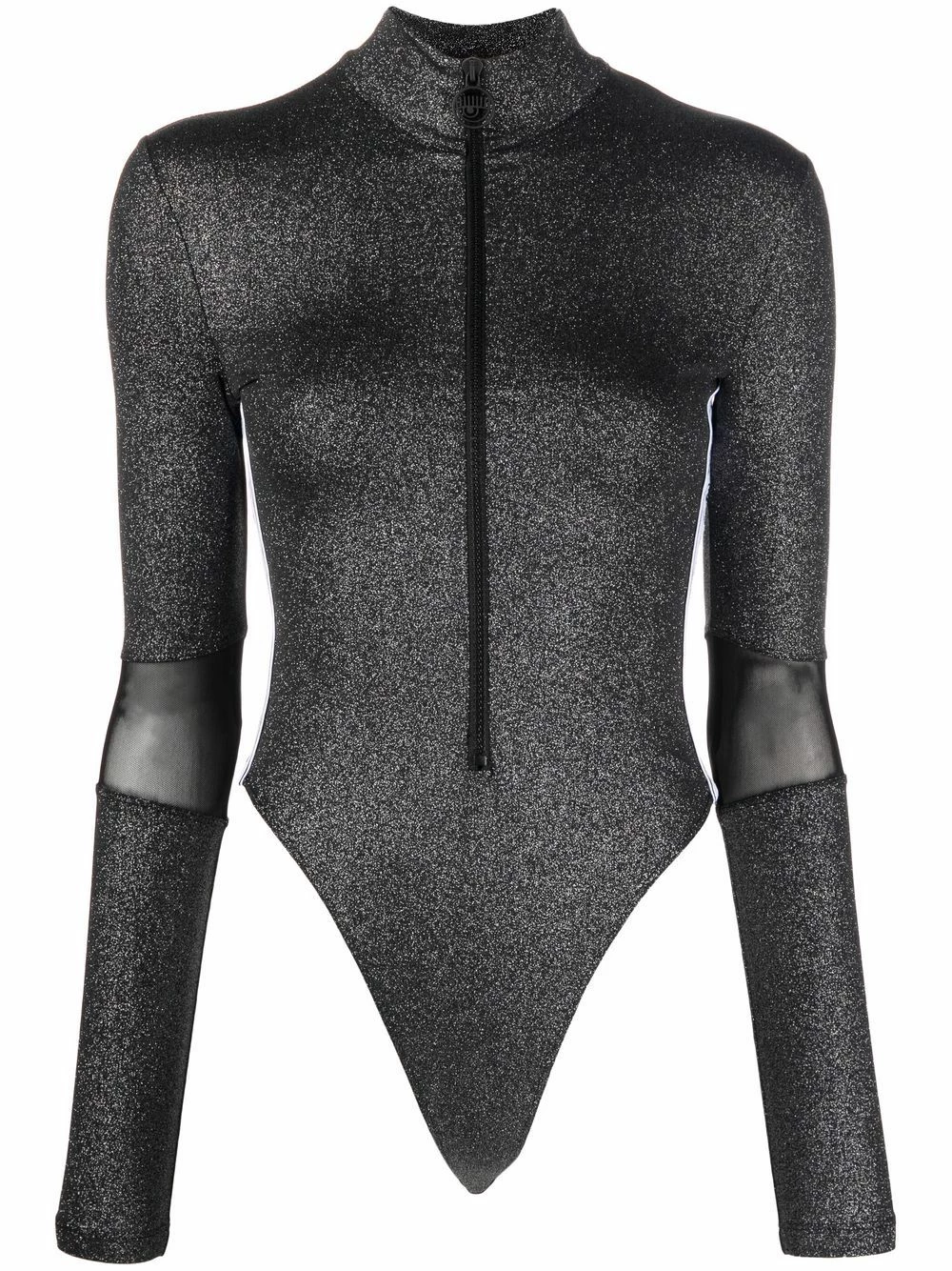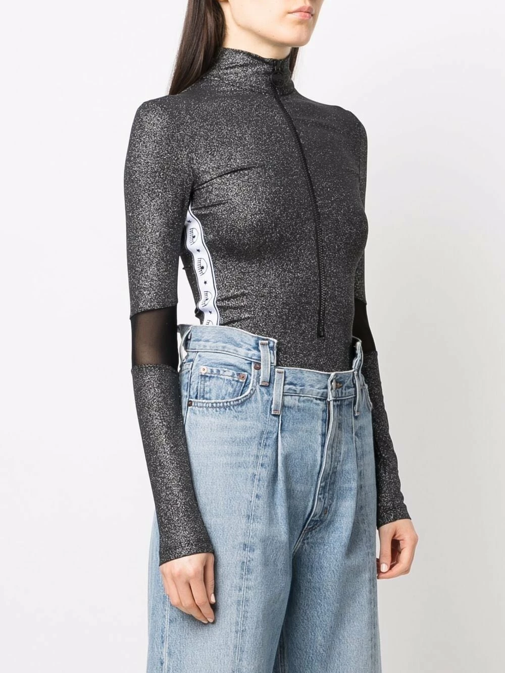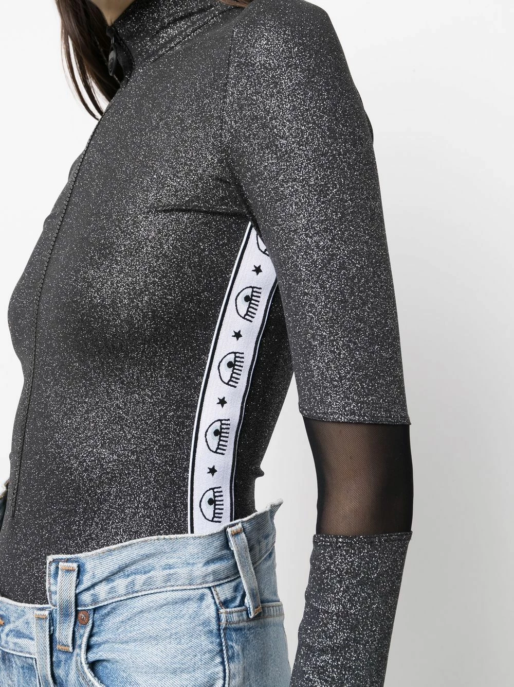 Black cashmere/virgin wool blinking-eye knit jumper from CHIARA FERRAGNI featuring all-over logo print, ribbed detailing, round neck, long sleeves and straight hem.