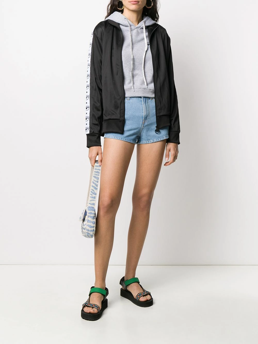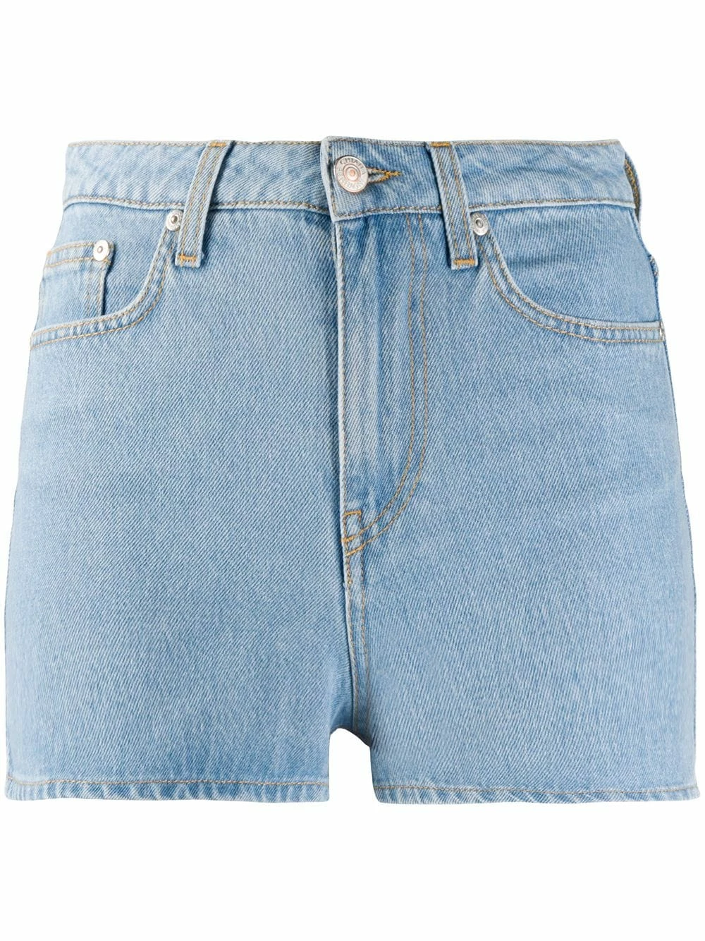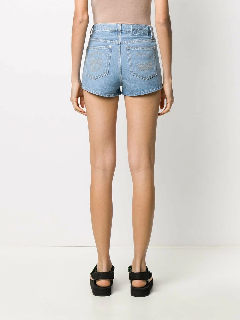 Light blue cotton fitted denim shorts from Chiara Ferragni featuring a waistband with belt loops, a button and zip fly, a slim fit, a five pocket design and a short length.