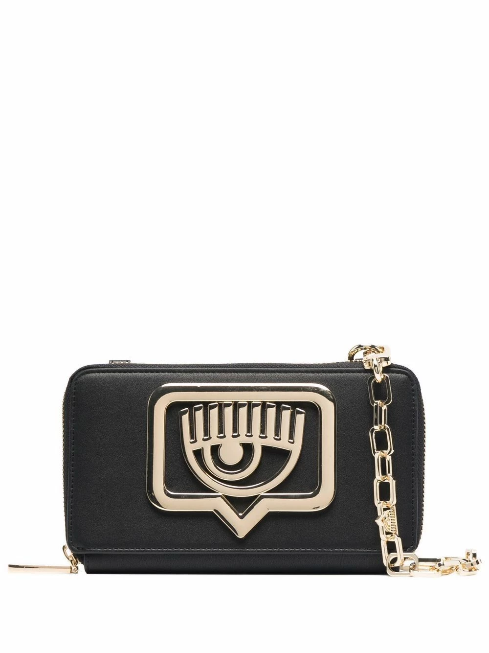 Chiara Ferragni’s shoulder bag is punctuated to its front with the brand’s winking eye logo in the form of a gold-tone plaque. The sleek design is enhanced with an all-around zip fastening and chain-link detailing.
