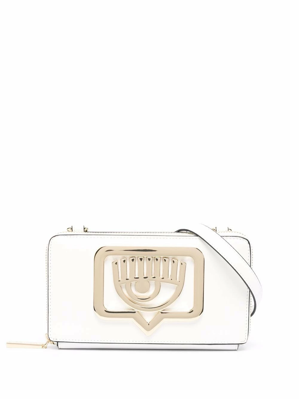 Chiara Ferragni’s shoulder bag is punctuated to its front with the brand’s winking eye logo in the form of a gold-tone plaque. The sleek design is enhanced with an all-around zip fastening and chain-link detailing.