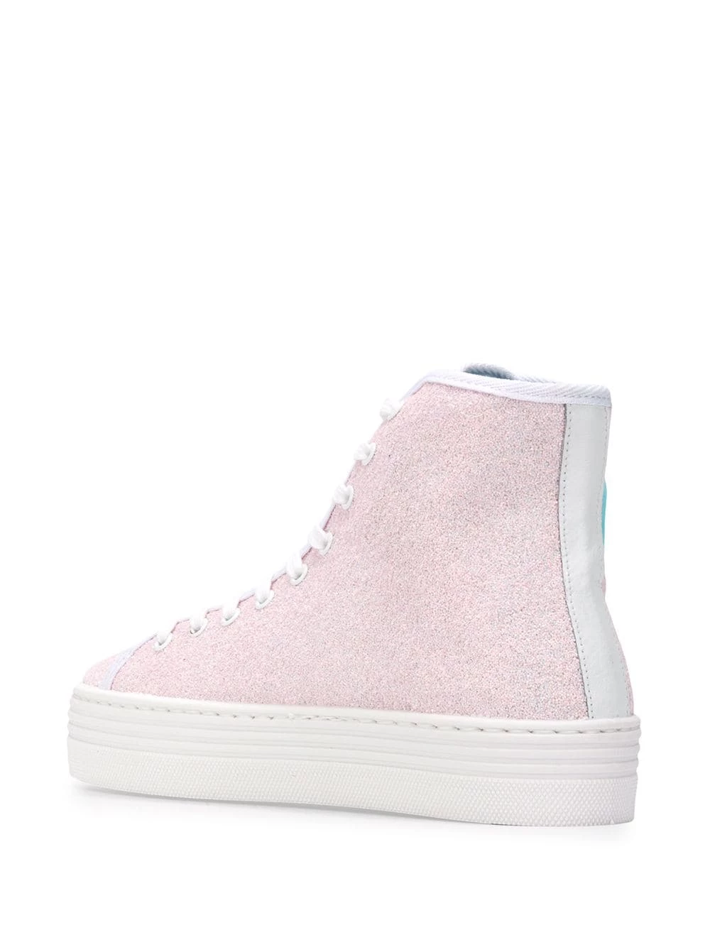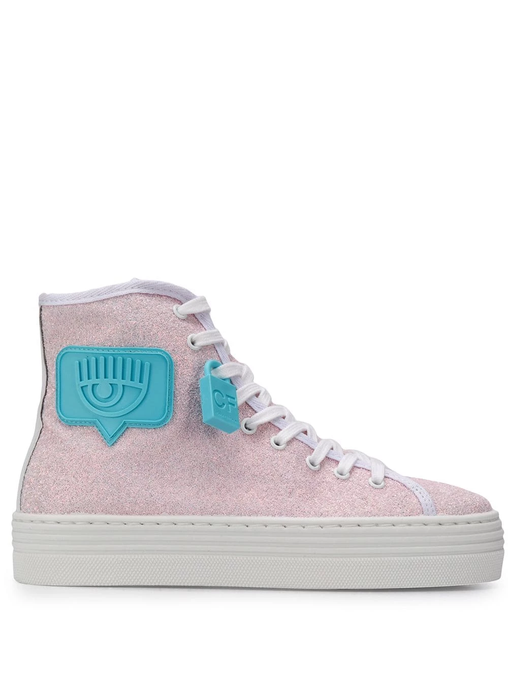Pink side patch sneakers from Chiara Ferragni featuring an ankle length, a lace-up front fastening, a branded insole, a white rubber sole and a leather lining.